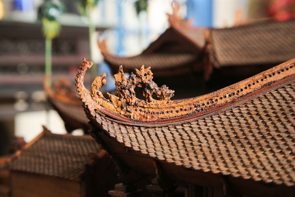 Gỗ gụ là nguyên liệu chính để chế tác nên mô hình đình độc đáo này