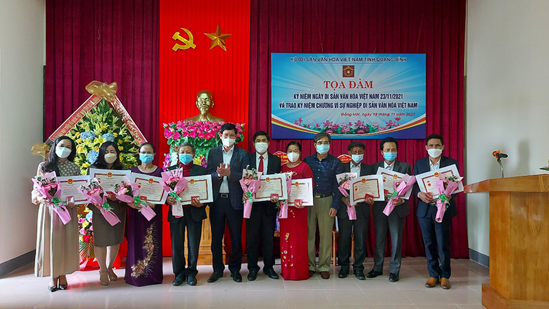 Nhân dịp này, Hội Di sản văn hóa Việt Nam đã tặng kỷ niệm chương “Vì sự nghiệp Di sản Văn hóa Việt Nam” (đợt 3) cho 14 hội viên có nhiều đóng góp trong hoạt động bảo tồn, phát huy các giá trị di sản văn hóa của dân tộc trên địa bàn tỉnh Quảng Bình.