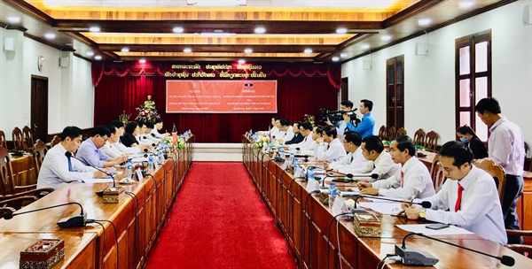 Trao đổi giữa cơ quan chuyên môn 2 địa phương Sơn La và Luông Pha Băng. Ảnh: H.Trinh