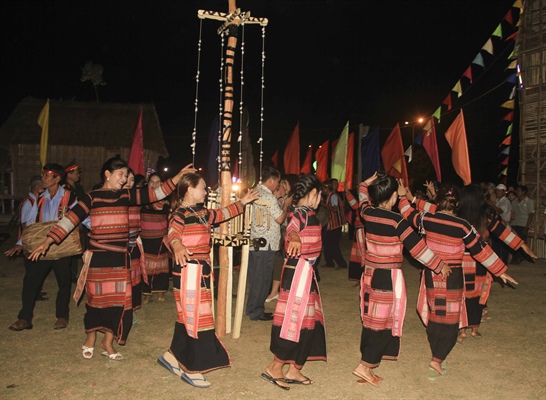 Những điệu múa, nhảy hòa cùng hòa âm nhạc âm vang tạo nên một bầu không khí rộn ràng, từng bừng của ngày hội
