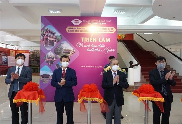 Lãnh đạo Tỉnh ủy, UBND tỉnh, Cục Di sản Văn hóa (Bộ VHTTDL) và Sở VHTT tỉnh Thừa Thiên Huế cắt băng khai mạc triển lãm