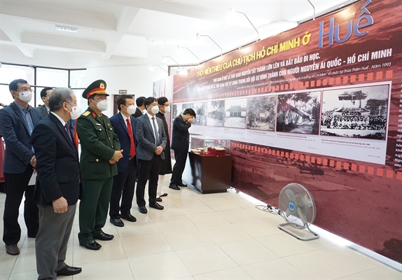 Triển lãm đã giành phần lớn để giới thiệu về 4 di tích đã được xếp hạng Di tích quốc gia đặc biệt, gồm: Nhà lưu niệm Chủ tịch Hồ Chí Minh tại đường Mai Thúc Loan; Nhà lưu niệm thời niên thiếu của Chủ tịch Hồ Chí Minh ở làng Dương Nỗ; Đình làng Dương Nỗ và Trường Quốc Học Huế.