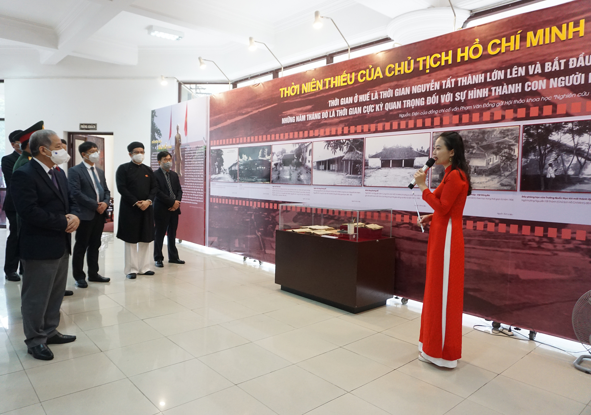 Triển lãm trưng bày hơn 150 hình ảnh, tư liệu, hiện vật, giới thiệu khái quát về thời niên thiếu của Chủ tịch Hồ Chí Minh và gia đình sinh sống, lao động, học tập và tham gia các hoạt động yêu nước trong khoảng thời gian hơn 10 năm tại Thừa Thiên Huế (giai đoạn 1895-1901, và từ 1906-1909).